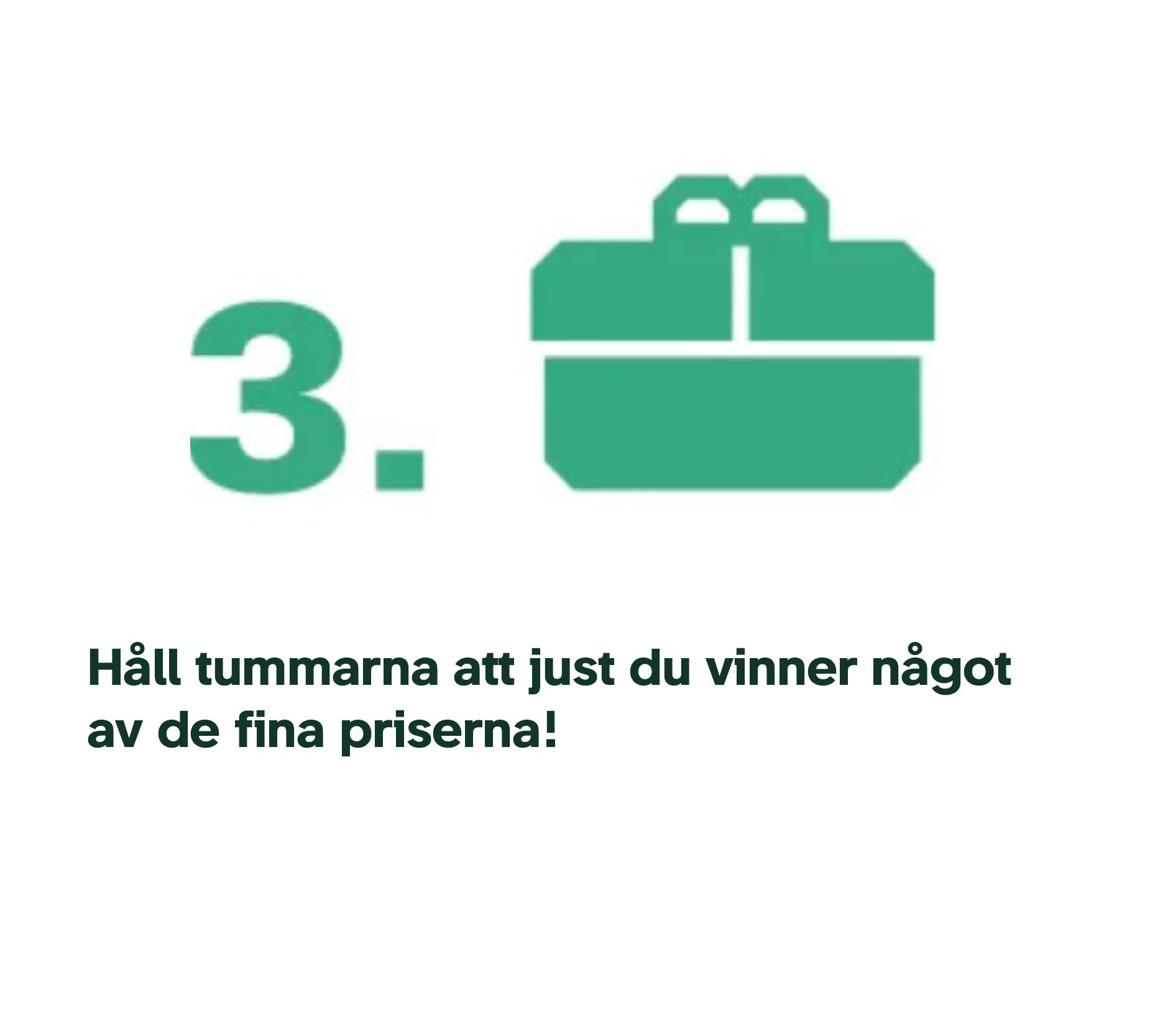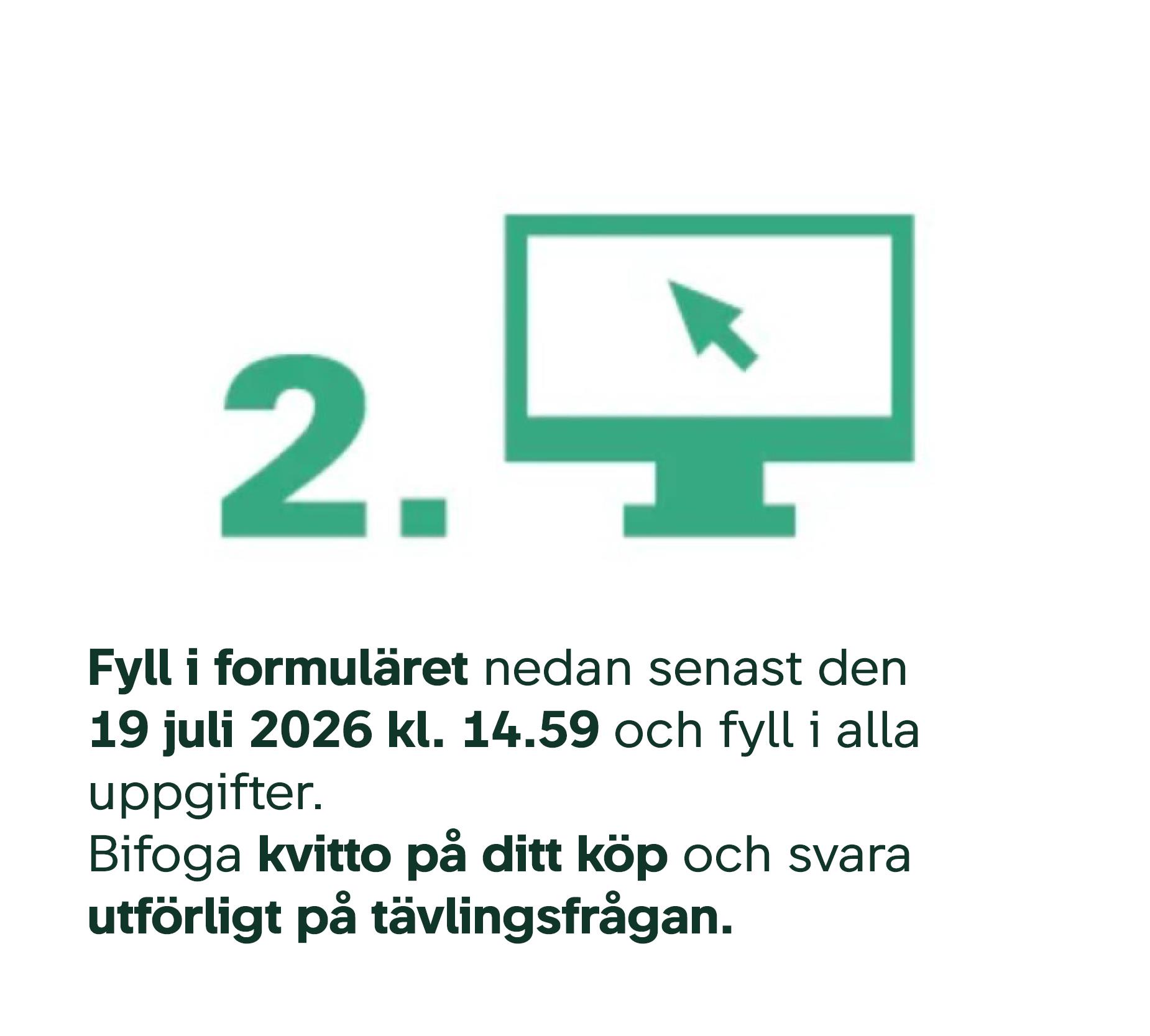 Skanna QR-koden, fyll i dina kontaktuppgifter, ladda upp kvittot och svara på en tävlingsfråga.